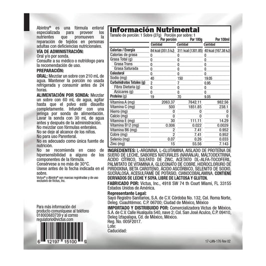 Abintra, caja con 30 Sobres con 27g. Sabor a Naranja