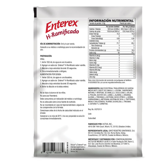 Enterex H-Ramificado, polvo. Caja con 24 sobres de 110g, sabor Vainilla